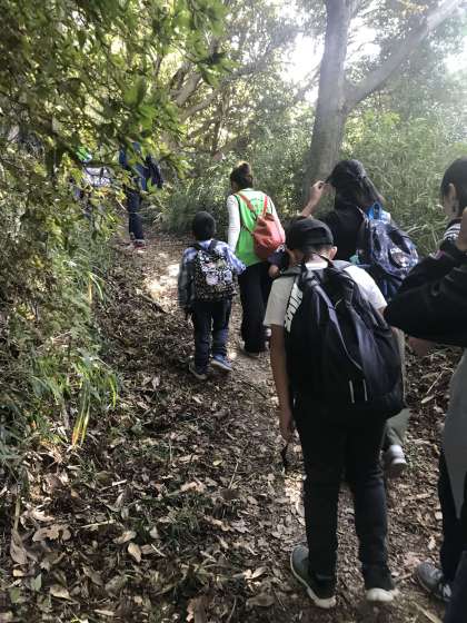途中、なかなかの山道もありましたが、1年生もしっかりと登ることができていました(^O^) 街中ではまず見ることができない「ナナフシ」を見つけた子どももいました。