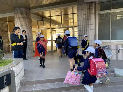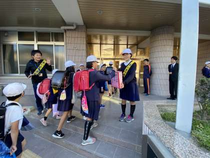 2学期2回目のあいさつ週間です。代表委員が中心になって、校門で元気な挨拶をうながしてくれています。あいさつレンジャーも登場しています(笑)