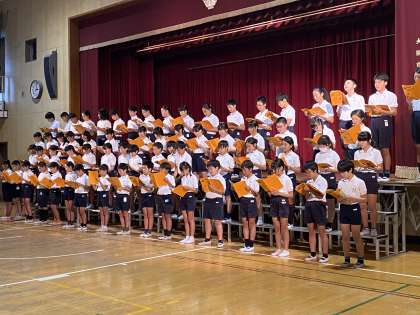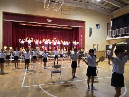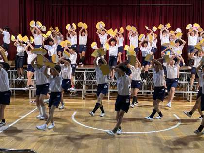 谷川俊太郎「生きる」と自分たちの「生きる」をミックスし、群読で表現します。今日が初めてのひな壇練習でした。まだ、台本を持っていますが、来週からは暗唱できることでしょう。