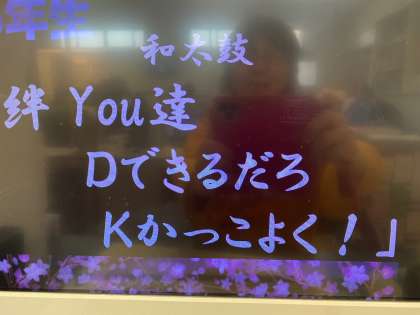 背景の旗は、運動会で作成したY・D・Kの旗です。一致団結!体現してくれました。