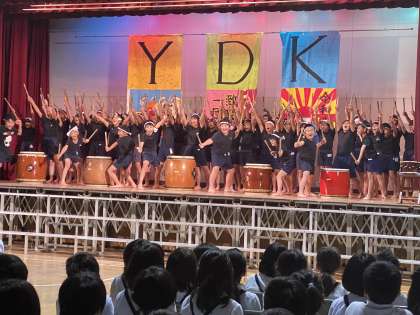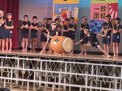 5年生の「和太鼓 絆」迫力のある太鼓の響きに、低学年は一緒になってエアで太鼓を叩いていました(^O^)自分たちも叩きたい!と思ったことでしょうね(^O^)