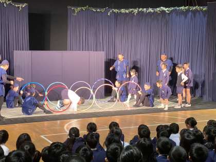 動物をあてっこしたり、アンデルセン童話の題名をあてっこしたりしました。また、子ども達にもフラフープくぐりを体験させてもらいました。みんな大喜びで声援や拍手を送っていました(^O^)