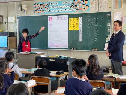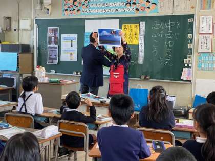 「日本一高いところにある郵便局はどこですか」「世界一低いところにあるポストはどこですか」などクイズも交えながら、子どもたちの興味関心を引きつけ、楽しく授業を進めてくださいました。