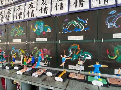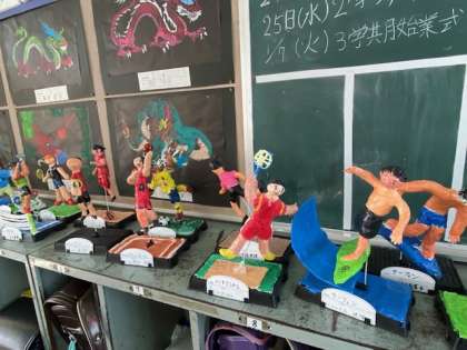 クラスの後ろには「未来に生きる自分」の彫塑作品。旅立ちの日が、近づいてきています。