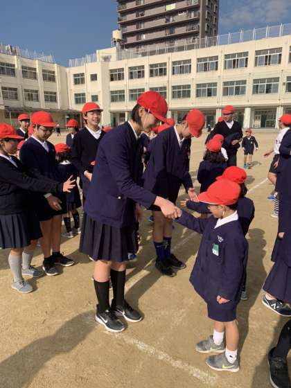 6年生は、1年生に優しくボールを投げたり、ボールを渡してくれたりしていました。コロコロ転がって来た1年生ボールに当たって、ビックリやら、悔しいやら(笑)という様子もありました。