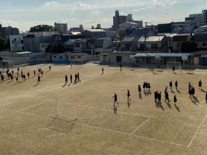 2組の様子です。腕相撲で盛り上がっていました(笑)2時間目には、学年サッカー大会を実施していました。