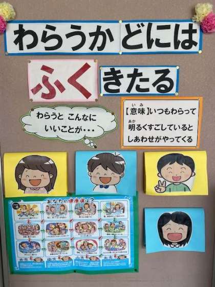 笑うことで「筋力アップ(リフトアップですよね)」「頭脳働きアップ」「免疫力アップ」「リラックス効果」の「福」がやってきます。河野は眉間に深いシワができ、筋力ダウンで口角下がっているし。クラス担任を外れると、大声で笑うことが減ります(叱ることも減ります(^^;)) 意識して、笑います!