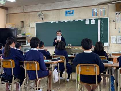 5年2組では、授業前に「スペシャルゲストが来ます」と伝えると「安倍総理?」とか言ってたようです。中島校長先生が入ってこられると、満面の笑顔であいさつしていました(^O^)