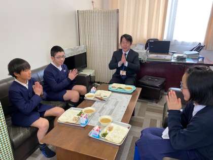 校長室ランチは、ほぼ半分が済みました。みんな入ってきたらまず歴代校長先生の写真を見ますね(^O^)