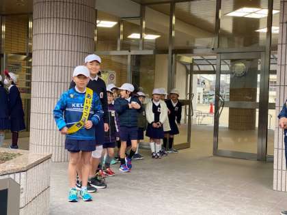 校門でのあいさつは、元気がいいのですが、見守り隊の方々や黄色いママ・パパへのあいさつが、あまり声が出ていないです。毎朝、自分たちの登校の安全を見守ってくださっているのだから、高学年の班長が中心になって、気持ちのいいあいさつができる子になってほしいものです。お家でも、話題にしていただけるとありがたいです。