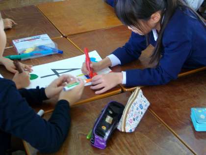 11月19日に行われるなかよし班オリエンテーリングに向けて、班のメンバーを確認したり、旗を作ったりしました。