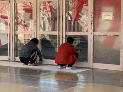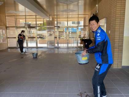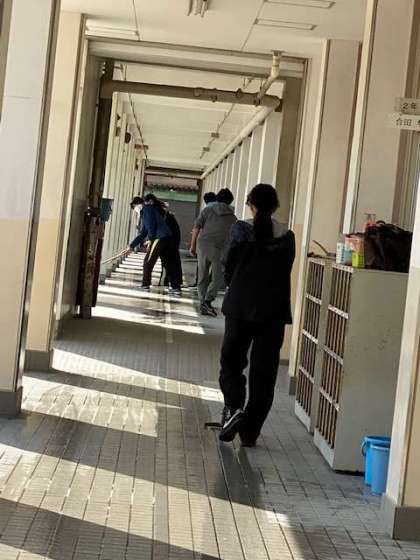 運動場からの砂ぼこりがすごいので、廊下や階段の清掃は、本日の午後に教職員で実施しました。3月の休業中、ほとんど清掃はできていないので、階段などに砂がいっぱいでしたが、きれいに水拭きをしてみなさんの晴れの日を迎える準備が整いました。