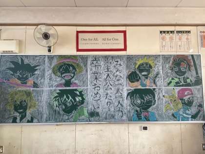 卒業式前夜。担任からの最後のメッセージを黒板に書き込んでいました。