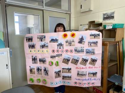 その時の写真です。「さようなら、鷹合小学校」「ありがとう、鷹合小学校」