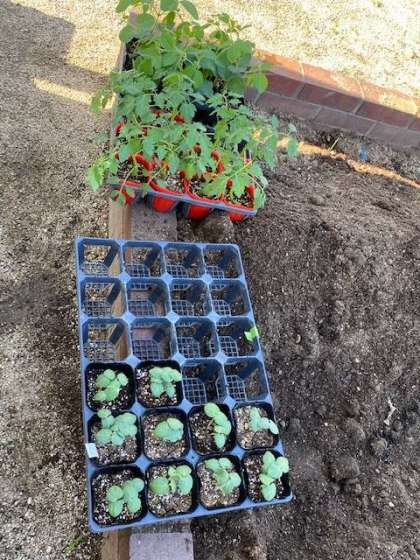 2年生も、先生が学習園に植え付けました。一人一鉢の「ミニトマト」は登校日に植え付けします。これからお日様もサンサンと照り付けることでしょうし、育ちが早いでしょうね。