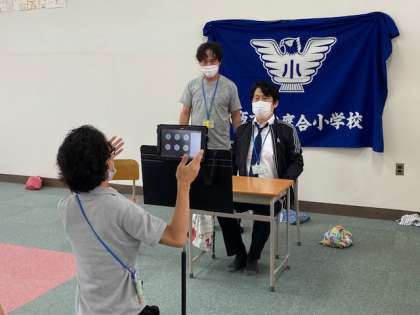 まずは、各教室に映像を送ろうということで、先日それぞれの授業用パソコンにアプリのダウンロードを実施しました。そして、昨日、月曜日の朝会を想定してリハーサルを実 施しました。