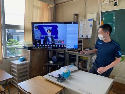 各教室の大型テレビに、校長先生の姿が映し出されました。いい感じでした(^。^) 集会でも利用していきます。