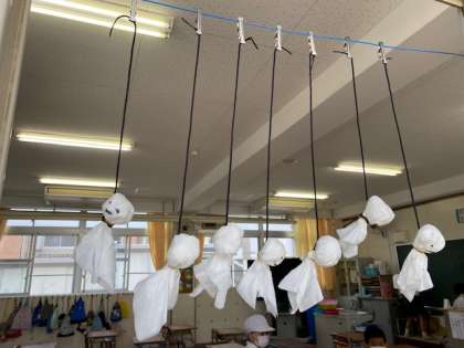 2年1組の教室には、てるてる坊主がいっぱい(笑) 明日は、「入学おめでとう集会」を実施できそうです。