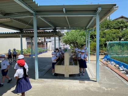 15分休み。運動場で元気に遊ぶ子ども達。休憩終了5分前に「PPAP手洗いソング」が流れ出すと、サッと遊びをやめて、水道に向かう姿が自然になってきました。