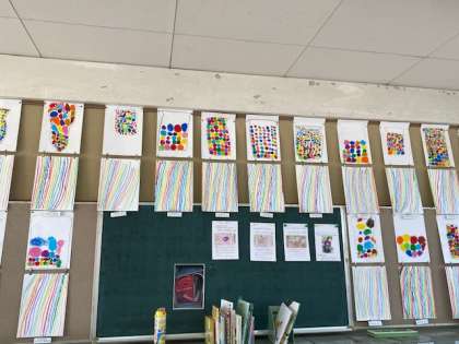 学校が再開して2週間。学習も軌道に乗りつつあります。図画工作の作品も仕上がりだし、学級の掲示板に貼り出されています。
