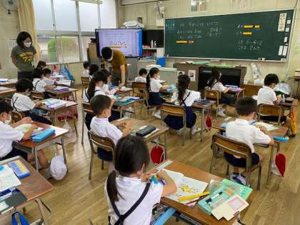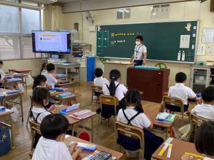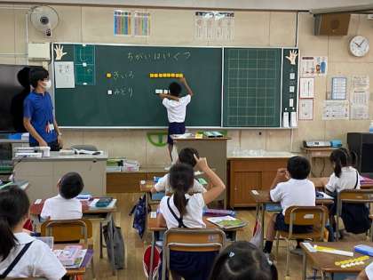 ブロックを操作しながら、答えを出していました。がんばれ!1年生!