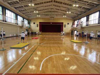 全体が見渡せるような場の設定で、子ども達が安全に気を付けて取り組めるように配慮して取り組ませています。