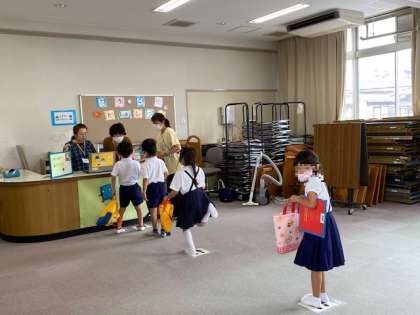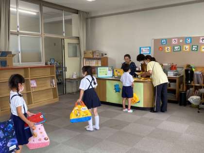 水曜と金曜の昼休みは、地域のボランティアの方やPTA図書委員会の方が図書館を開いてくださいます。