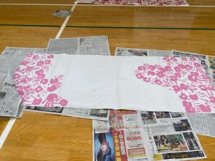今日は、6年生が担当場所に手形をスタンピングしていってました。