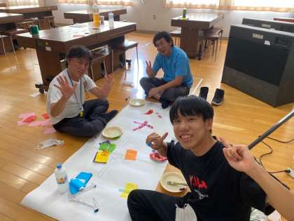大原先生・平鍋先生・東野先生の3人が、チマチマと何やら作っています。