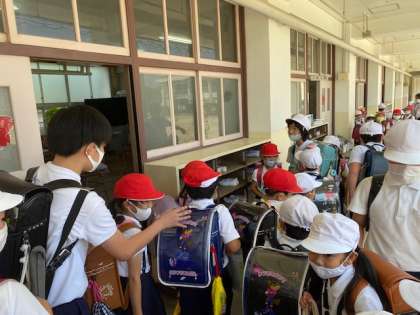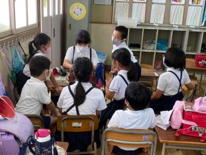1年生を、登校班の班長が迎えに行き、それぞれの教室に連れていきました。