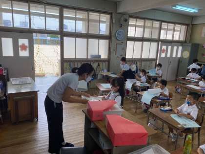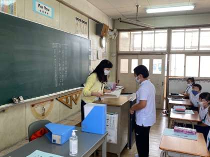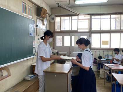 クラスでは、夏休みの宿題の冊子についての説明や、通知表が渡されていました。