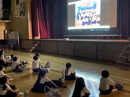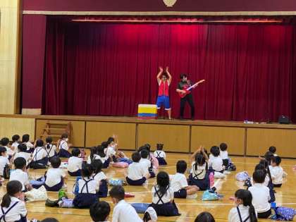 講堂では、1・2年生が、生演奏に生LIVEで劇を見せてもらいました。