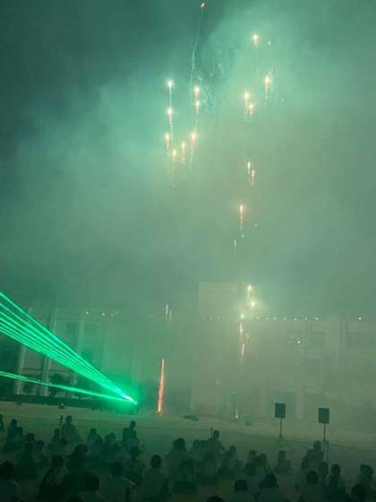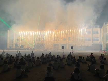 サマーフェスティバルのラストを飾る鷹合小学校の花火は有名ですが、毎年3000人近い人が集まる中での観覧ですから、ゆったりとは見られません。でも、今年は違います(^O^)