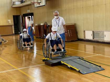 ちょっとした段差が、一人では上がれなかったり、跳び箱と跳び箱の間の狭い道を進んだり、なかなか難しいコースでしたが、真剣に操作していました。