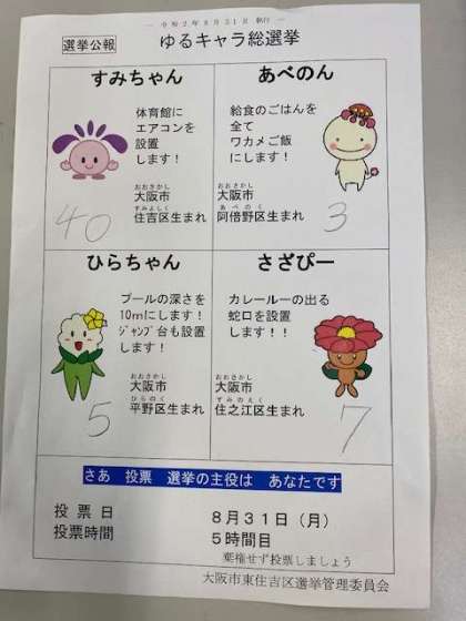 「体育館にエアコンを設置します」という公約の「すみちゃん」が選ばれました(^O^)