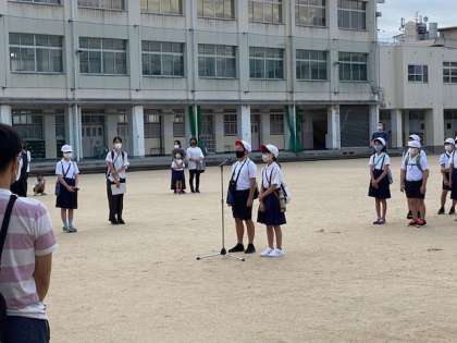 児童代表からの挨拶、全員からの『いってきます!\(^o^)/』に保護者の方々からは、温かい拍手をいただきました。