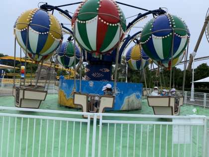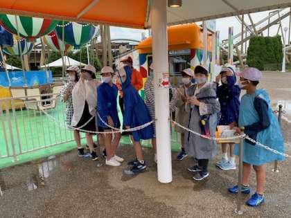 雨が上がってきました。暑くもないしアトラクション周りに最適です。子ども達、ウキウキです\(^o^)/