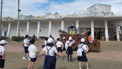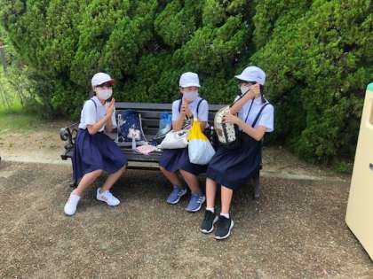 雨の為、休止していたピレネーが動き出しました\(^o^)/ 永井先生と子ども達、先頭です(笑)3人で頂上いくまで校歌を歌っていたそうです。乗っている間も声が聞こえると思ったら、歌い続けながら乗っていたようです。そして、ピレネー遠慮組さんは、待っている間に消毒していたそうです。偉いですね。