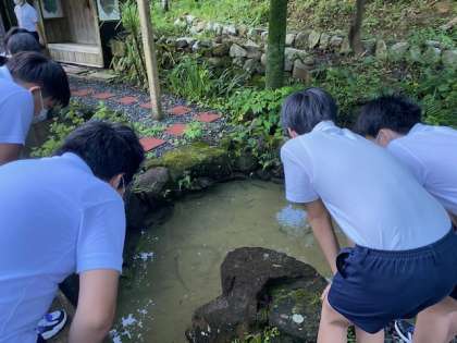 そのあと、ラジオ体操をして、身体も脳もしっかり目覚めさせました。めだか池の様子も観察しました。