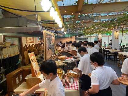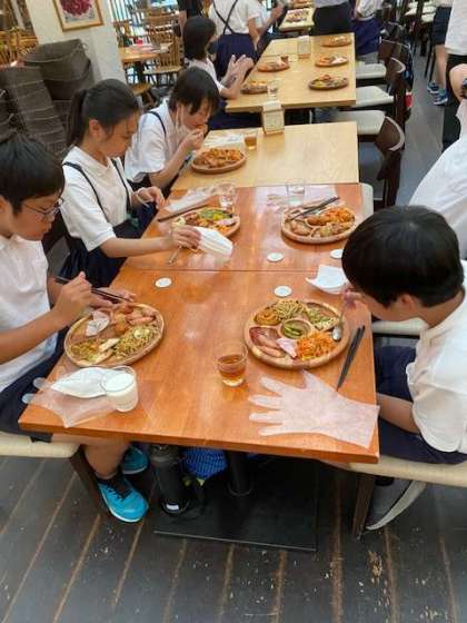 みんなで、美味しくお昼ご飯をいただいている間、外はバケツをひっくり返したような雨。ミニ豚の頃は晴れていなのに。子ども達は、天気より食欲です。