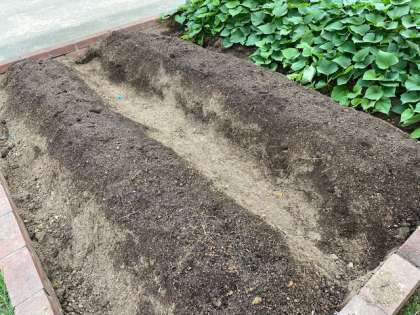 2年生が、中心になって育てていく学習園の様子です。きれいな畝となっています。昨日3粒ずつ撒きました。育ってきたら間引いていきます。