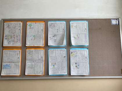 学習参観に合わせて、各学年の学級の壁面の掲示物や廊下の掲示物も一新されています。