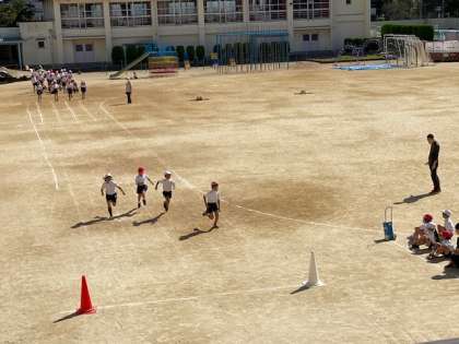3年生になると、さすがに慣れてきています。運動場での運動会でしたら、トラックを使ってになりますが、今年度は全員直線コースです。