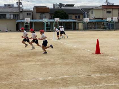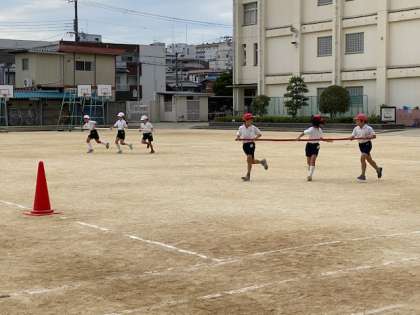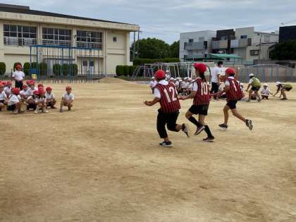 4年団体競技「鷹合タイフーン 〜友情の嵐〜」の練習風景です。