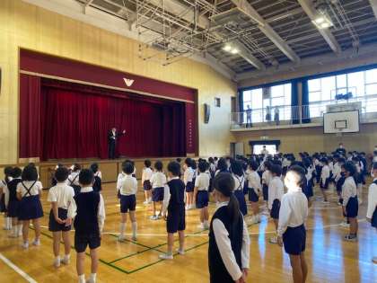 本日の朝会の校長先生のお話は、「運動会の歴史」についてでした。