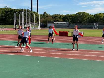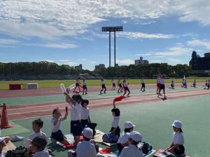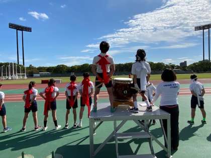 応援団に合わせて、鳴り物で応援している低学年です(^^♪