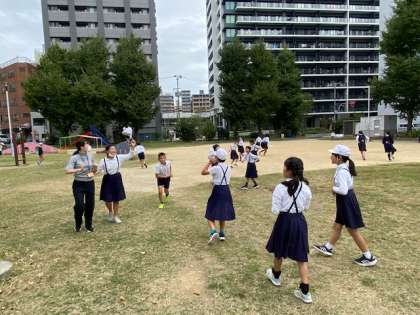 クラス全員で「しっぽとりふえおに」をしました。付添の山崎先生に、「一緒に遊んであげて。私は年いっているから無理」とお願いしてたのですが、あまりにすばしこく走り回り逃げ回る子どもたちに、「よっしゃ!はさみうちや!」と参加。すぐに息切れしてしまいましたが…。