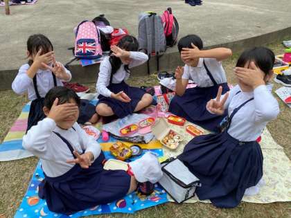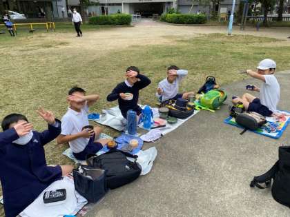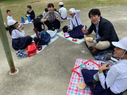 みんなで、お弁当タイム。外で、友達と食べるお弁当は格別の味ですね(^^)/