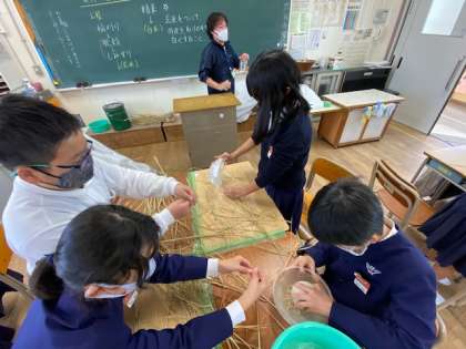 ここまでを体験しました。わらは作品展で再利用するそうです。
