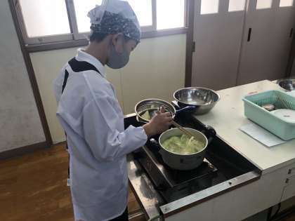 5年生は、本日1・2時間目は2組、3・4時間目は1組が、「ゆで野菜」の調理実習を行いました。